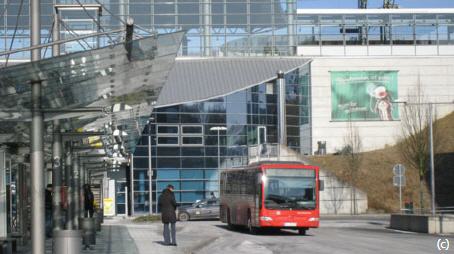 Gehen Sie bitte in Richtung Ausgang Stadtzentrum, (Schlossblick), die Treppe oder mit dem Aufzug nach unten auf die Bahnallee zu.