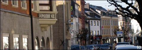 Die Bahnhofstraße links von uns, eine Einbahnstraße, erfreut mit ihren vielfältigen Geschäften. Apotheken, Schnellreinigung und Wäscherei sowie Buchläden und Friseure freuen sich auf Sie. Auch für ein schönes Geschenk und einen Blumengruß findet sich etwas - hier werden Sie versorgt. |